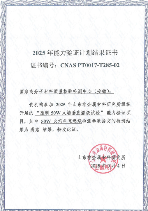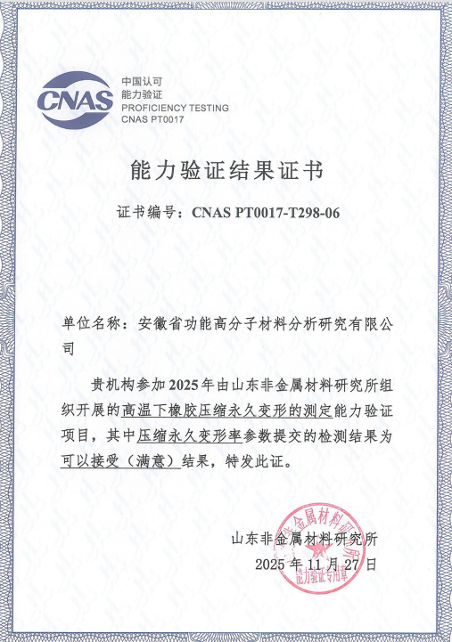 2025年,国家高分子材料质量检验检测中心(安徽)高质量完成全年实验室质量控制计划,其中能力验证作为核心组成部分,参评的26个项目全部获得“满意”结果(1项待正式公布),实现近乎“全优”的优异成绩,充分体现了中心在检测全过程中的规范管理、精准操作和可靠技术能力。