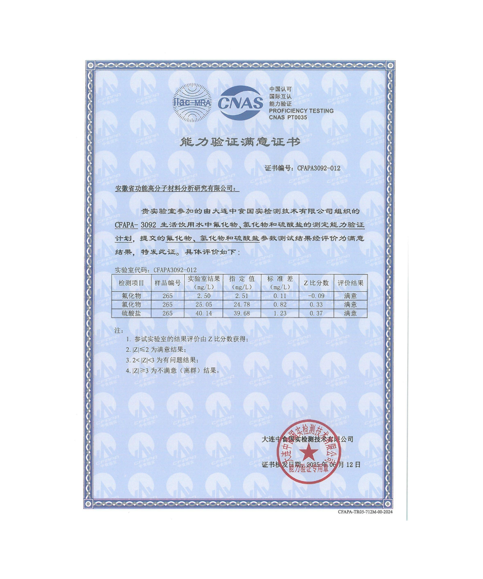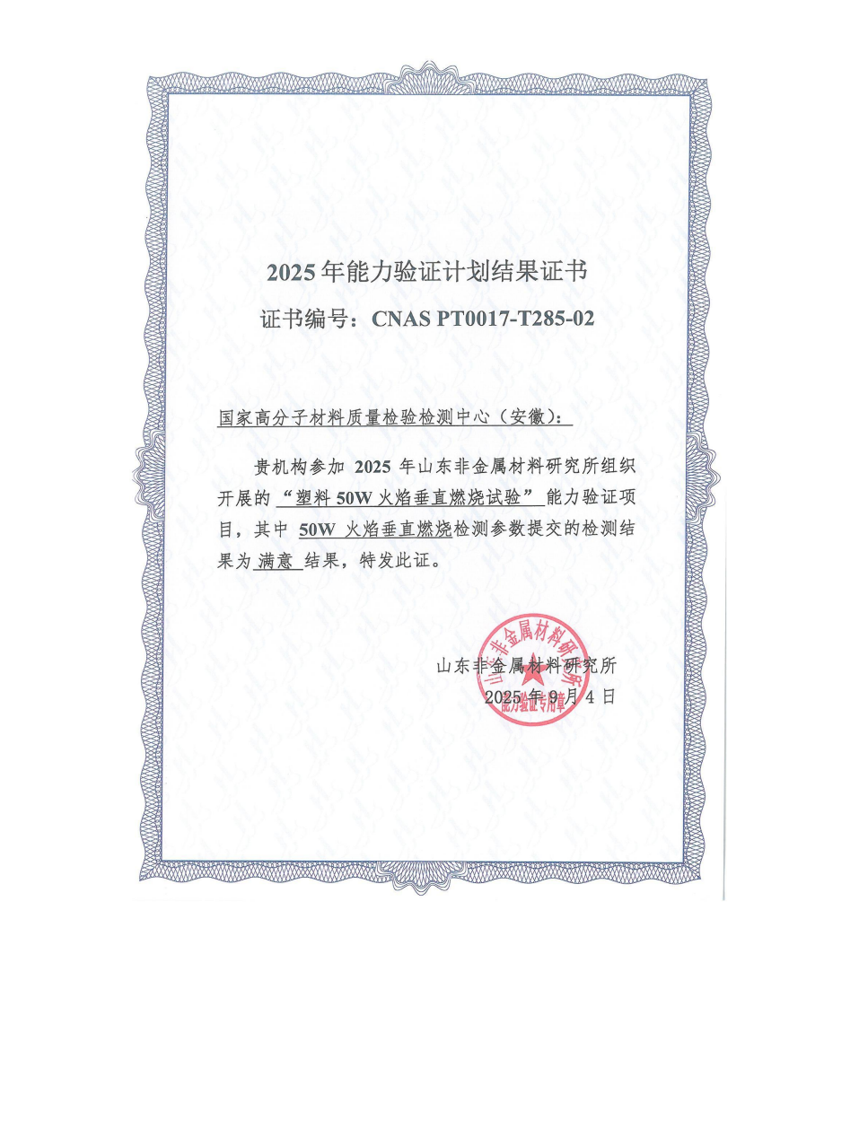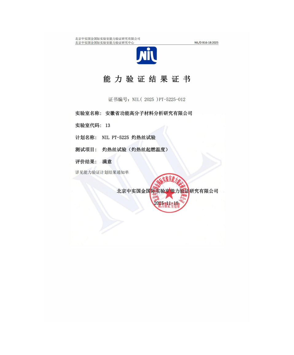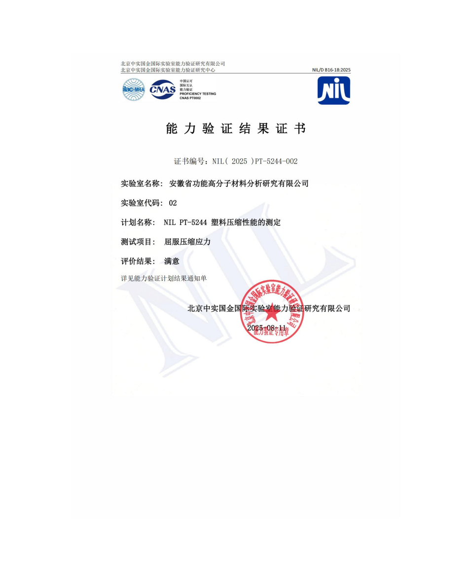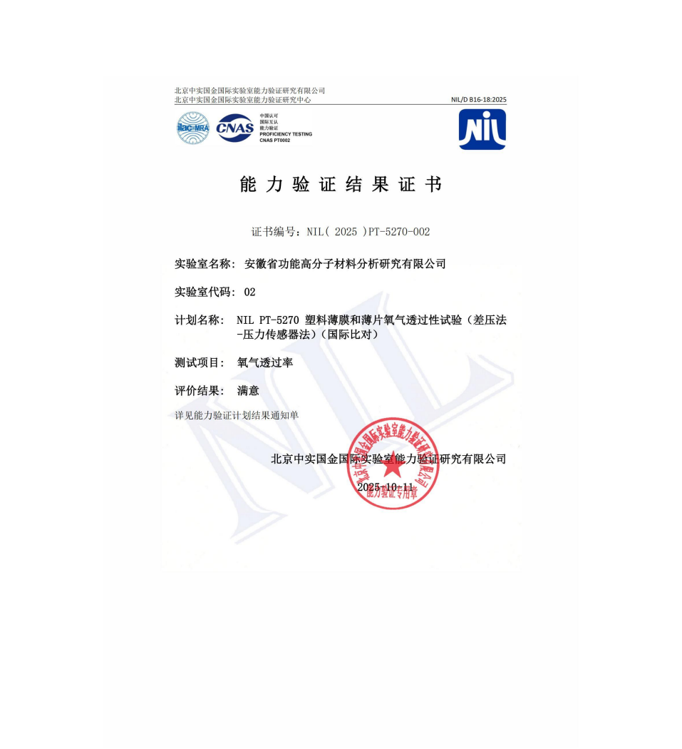 2025年度能力验证结果满意证书合集