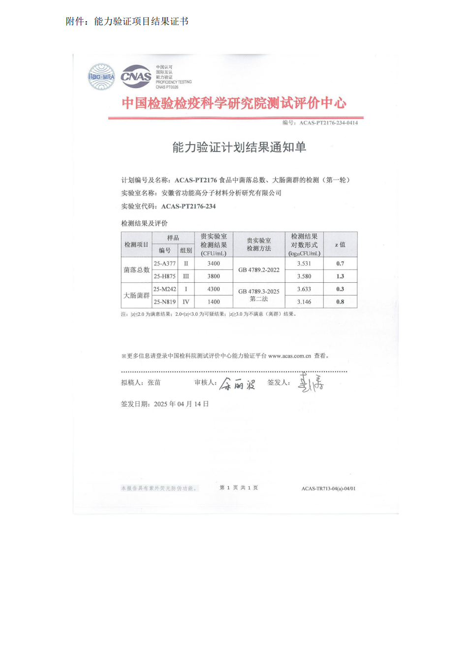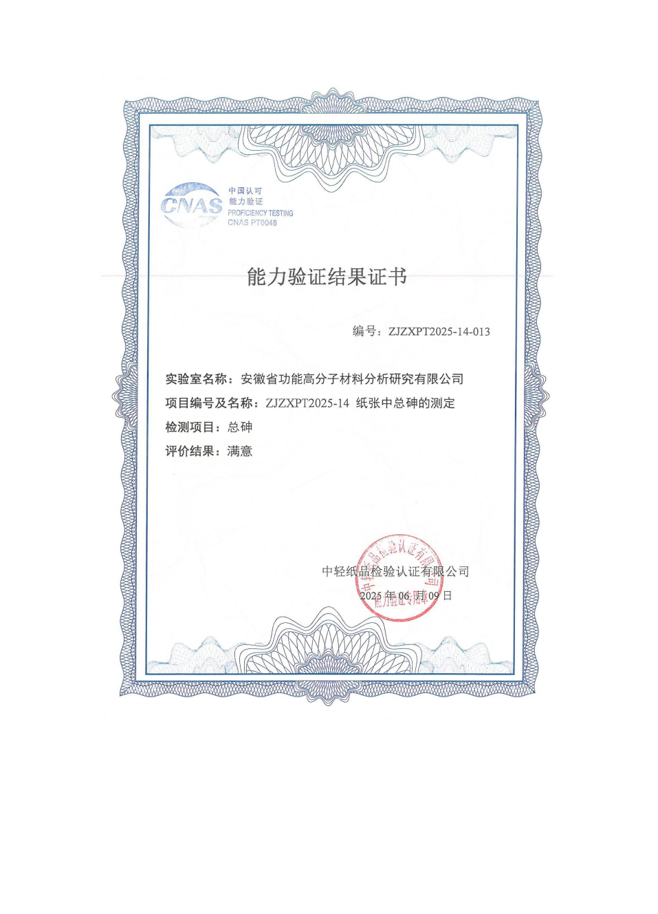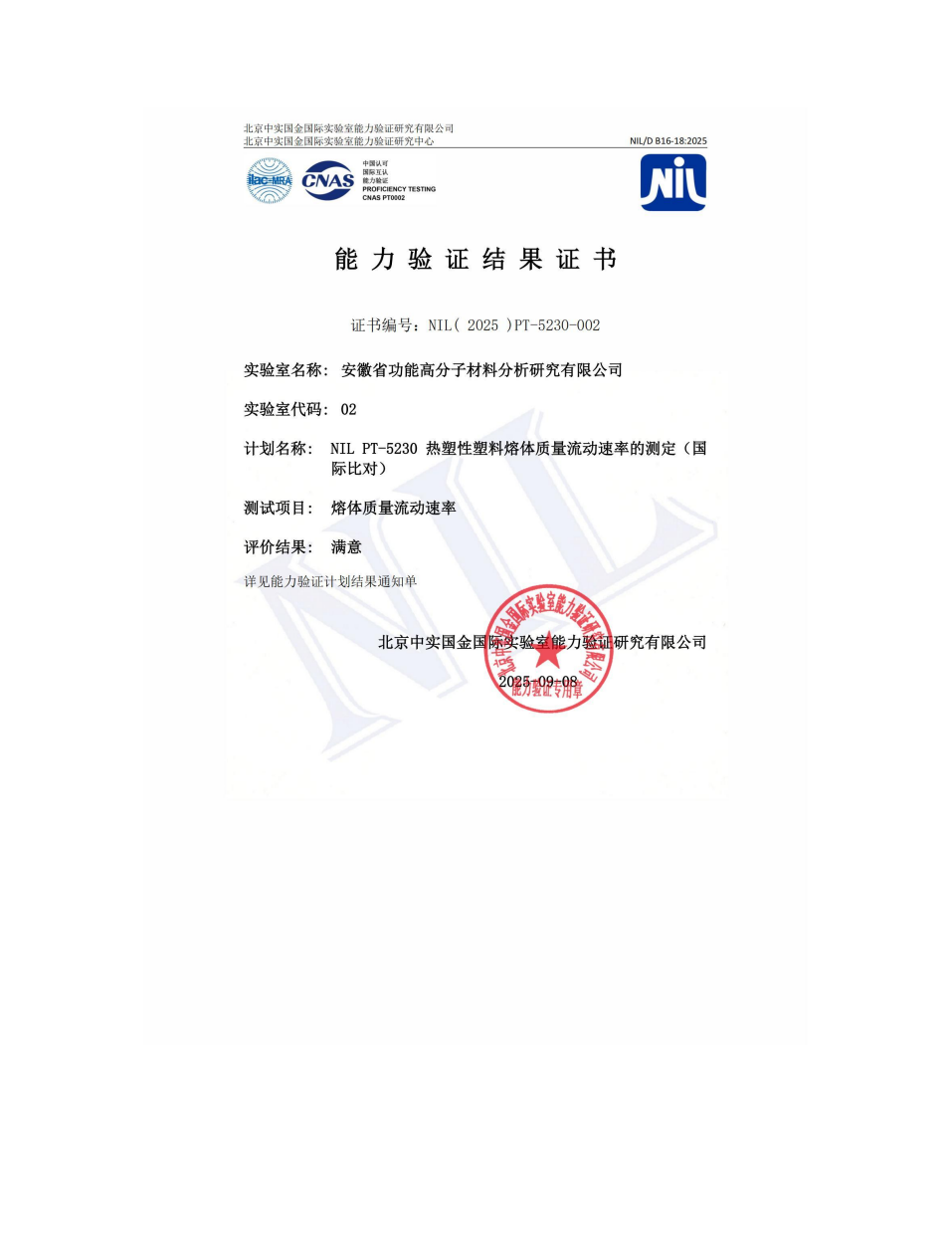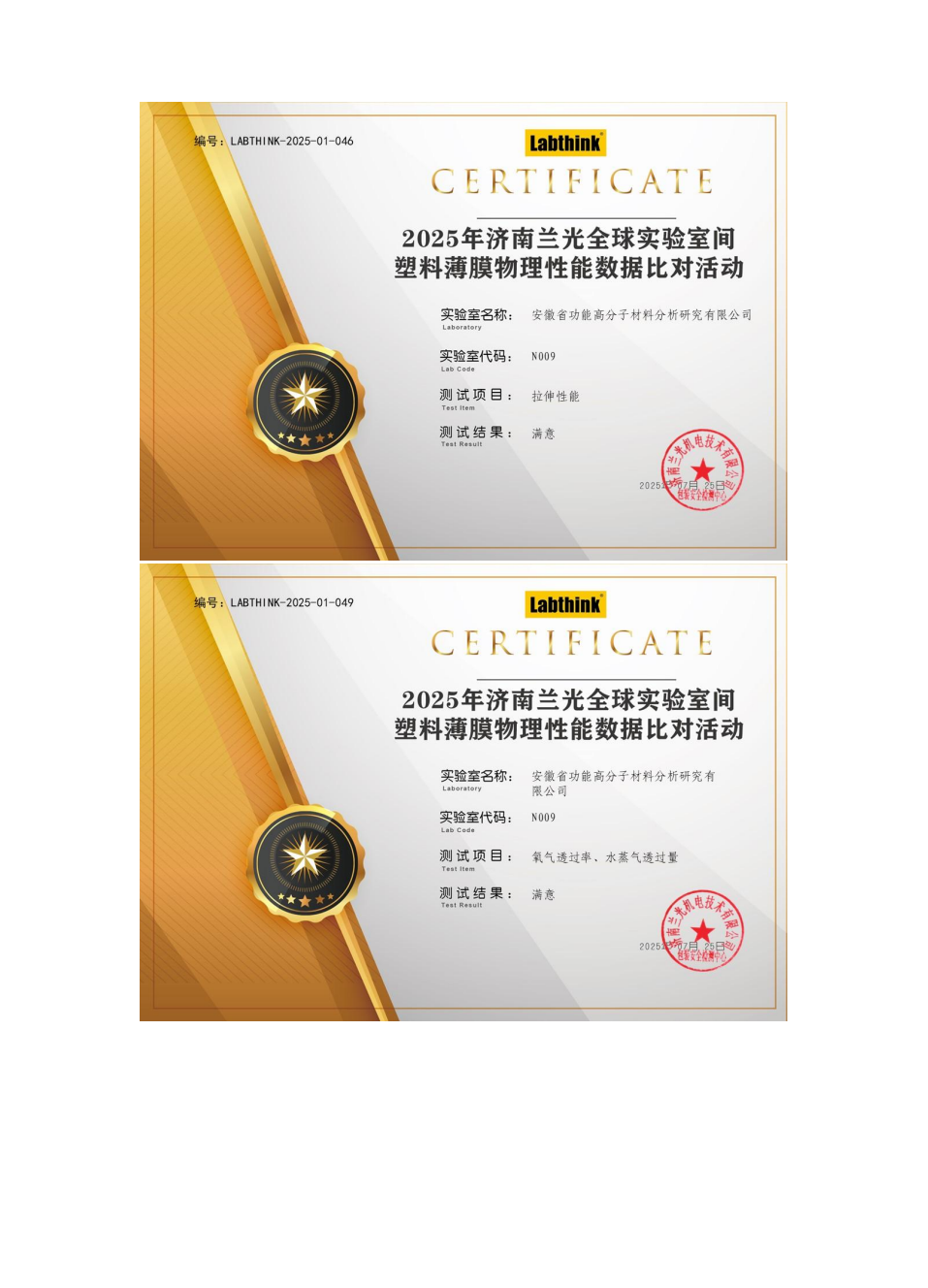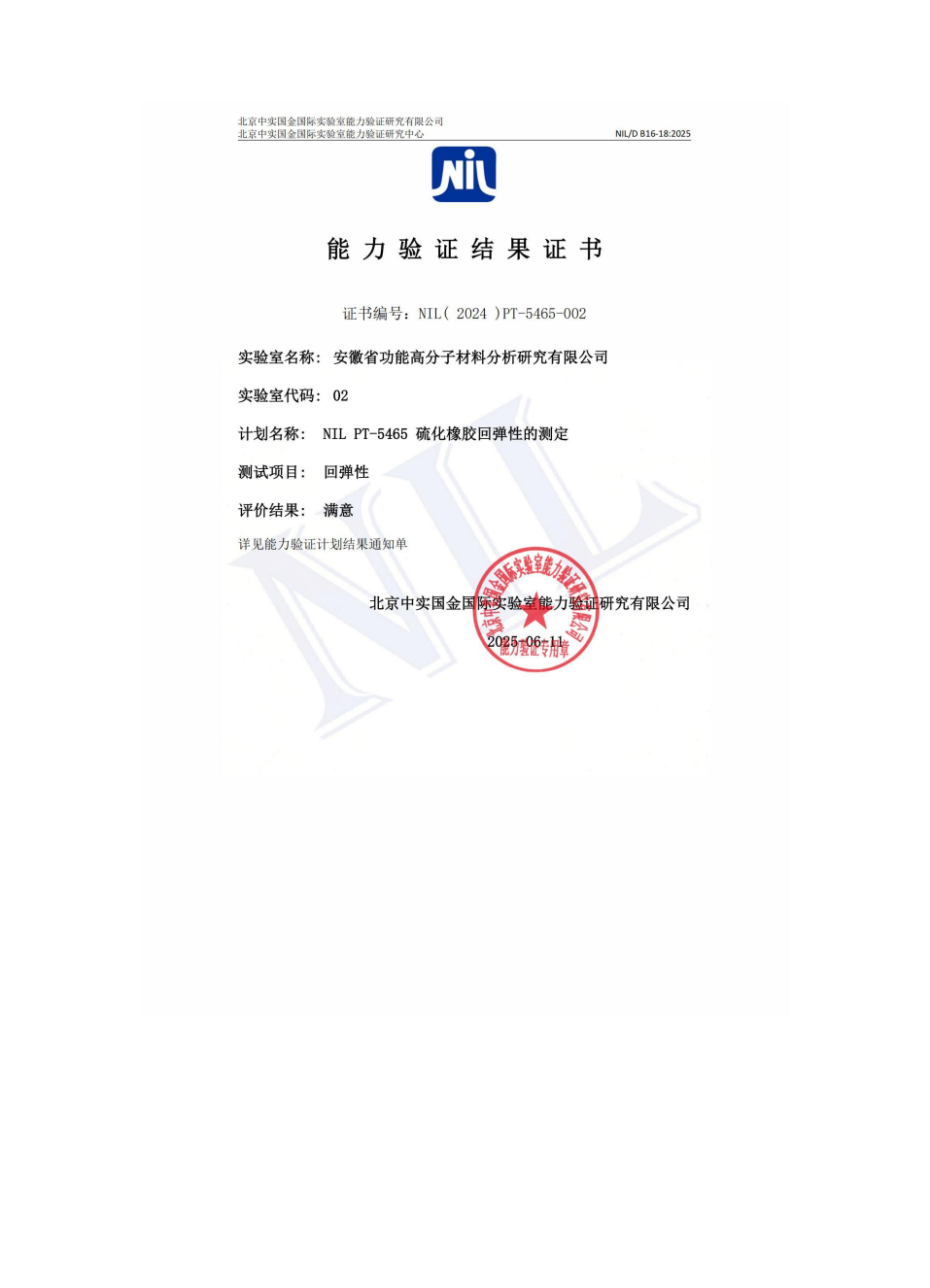 2025年度能力验证结果满意证书合集