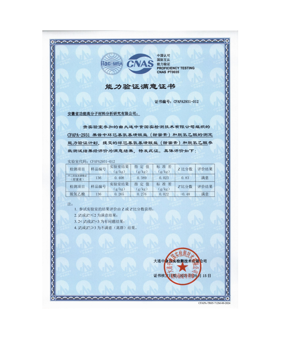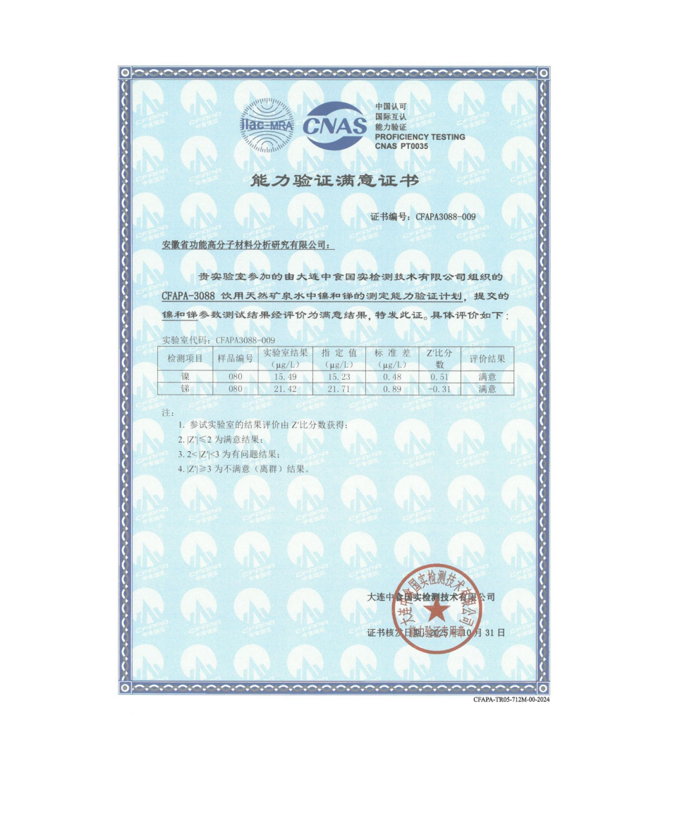 2024年度能力验证结果满意证书合集